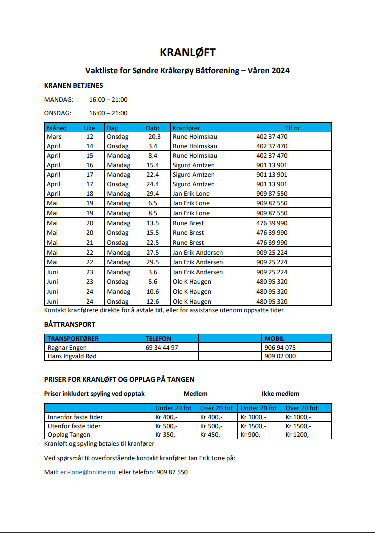 Tider for kranløft høsten 2025 Her finner dere tider og oversikt over vakter for kranløft høsten 2025. Les mer